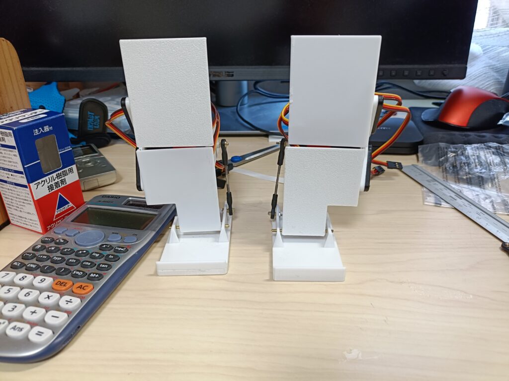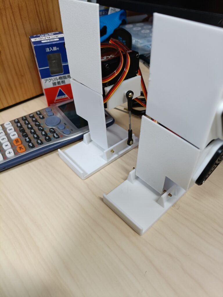 上記のように、人間型ロボットの関節について、樹脂を造形して組み立てました。